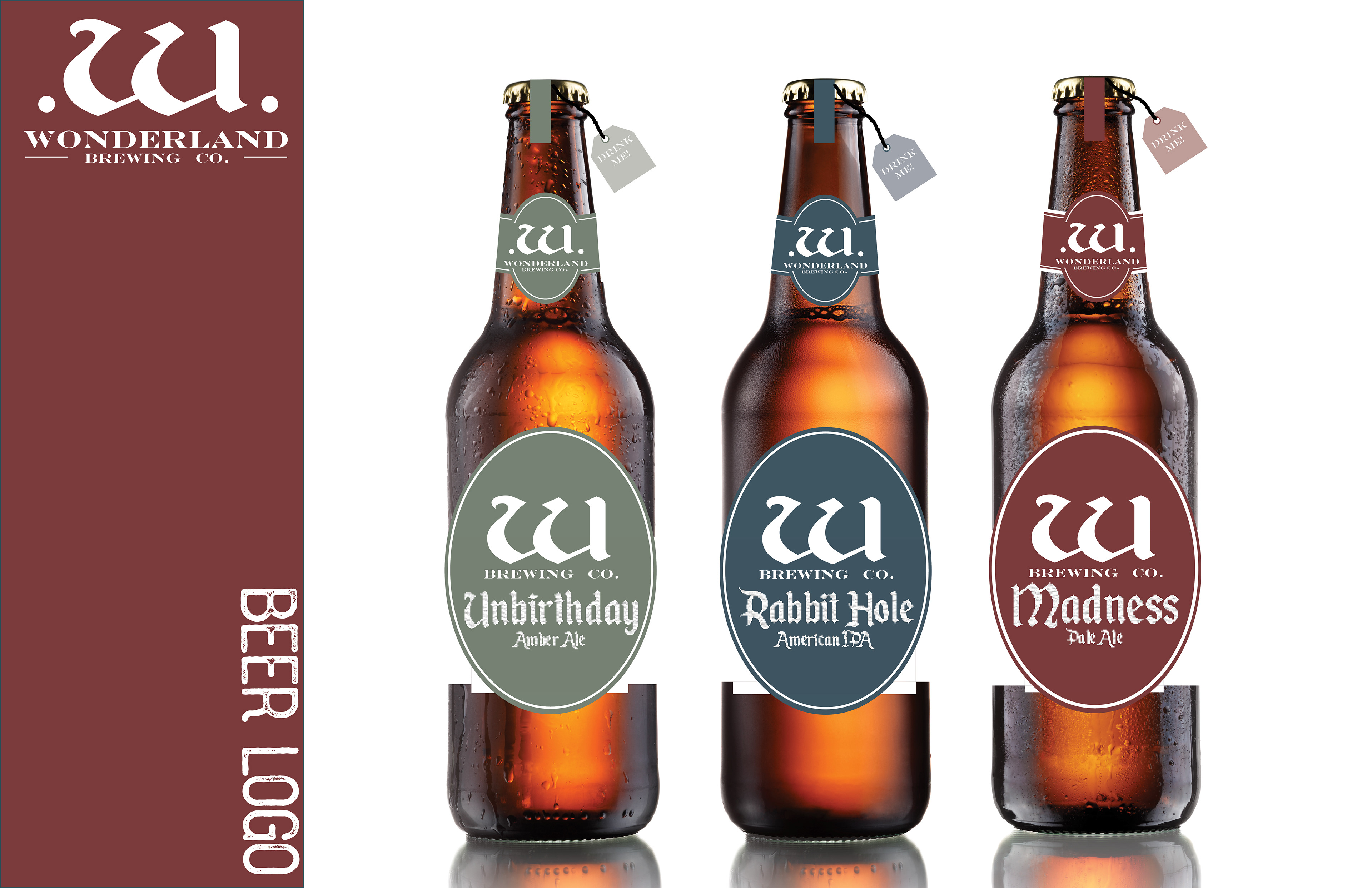 Wonderland Brewery is located in Broomfield, Colorado. I wanted to bring more of a brewery vibe to this rebrand. The current mark looks more like a dentistry than a brewery. I wanted to maintain the Alice in Wonderland theme. I extended the identity into la-bels, t-shirts, bottle caps and a variety of other applications.